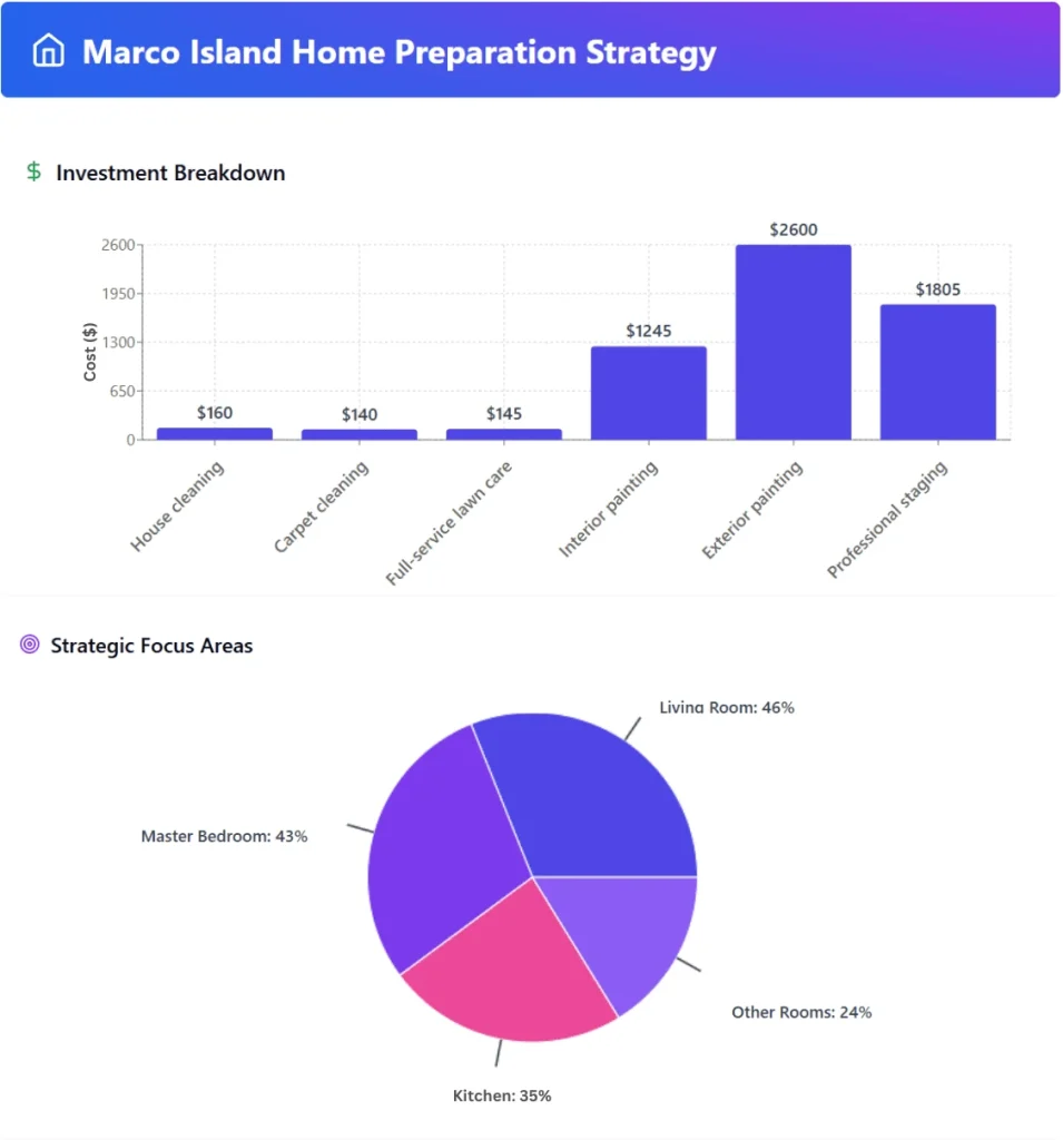 The best rates of return come from curb appeal improvements, minor kitchen updates, fresh paint, and thorough cleaning. Your Marco Island realtor commission rates (averaging 5.46%) often include consultation on which improvements will maximize home valuation.